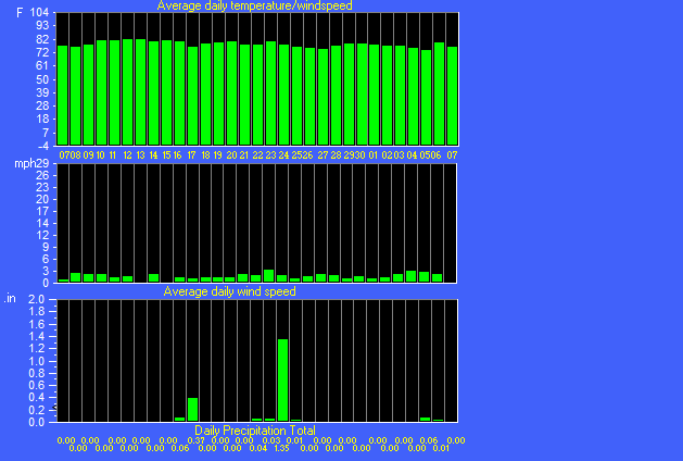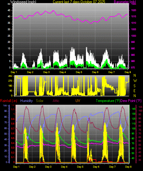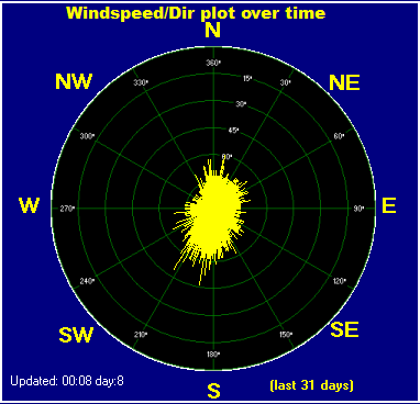 Maximum windspeed = 10.4 mph from 163°(SSE) on day 06 at time 17:20